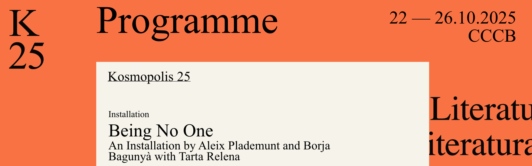 Being No One is an installation that emerged from the collaboration between the photographer Aleix Plademunt and the writer Borja Bagunyà, with music by Tarta Relena. The installation is part of a larger project that retells Odysseus’ journey through today’s Mediterranean. This exhibition has place in the CCCB during the Kosmopolis Festival.